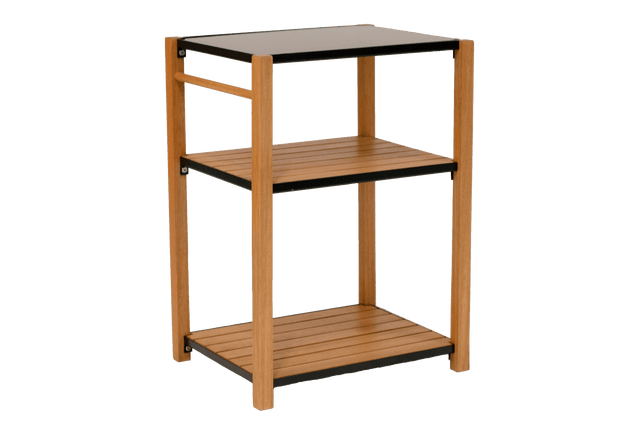 Mit Dora Grilltisch mit schwarzer Granitplatte schafft man ideale Bedingungen für einen kleinen Grillabend. Hier erhalten Sie einen Arbeitsplatz in passender Höhe, der Ihnen die perfekten Arbeitsbedingungen für einen schönen Grillabend mit Freunden oder Familie auf dem Balkon bietet. Die schwarze Granitplatte ist nicht nur stillvoll, sondern auch als Unterlage für den warmen Barbecue-Grill eine tolle Option, da sie hohen Temperaturen standhält und leicht zu reinigen ist. Der Rest des Grilltisches Dora ist aus geöltem Eukalyptusbaum gefertigt. Die goldene Oberfläche des Materials bildet einen guten Kontrast zur Granitplatte. Kombinieren Sie den Grilltisch Dora mit dem niedrigen Grilltisch Dora für zusätzlichen Platz auf dem Tisch.