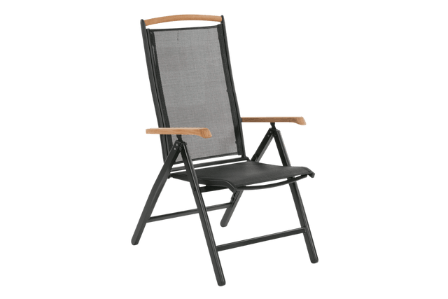 Positions Stuhl mit Aluminiumrahmen und schönen Teakholzdetails. Dieser klassische Brafab-Stuhl bietet Ihnen einen wirklich bequemen Platz zum Ausruhen. Sitz und Rückenlehne aus strapazierfähigem Material "Textilene". Für zusätzlichen Komfort kombinieren Sie den Stuhl mit dem Andy Hocker aus der gleichen Serie.