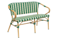Die Claire-Bank ist in einer stilvollen Kombination aus beige-grünem, geflochtenem Polyrattan erhältlich. Sie wird durch stabile Tragegurte verstärkt und verfügt über ein robustes Aluminiumgestell mit Bambusoptik.