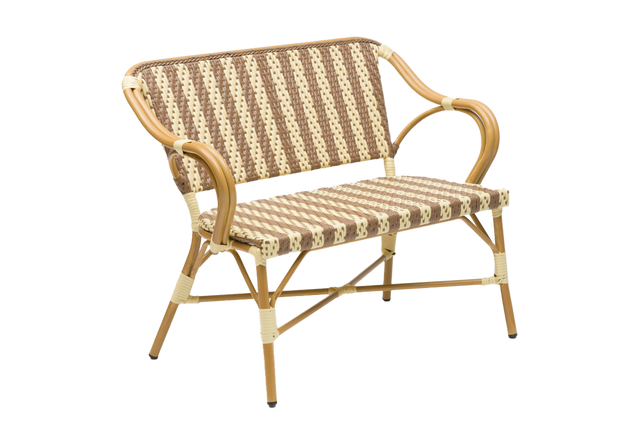 Sitzfläche und Rückenlehne bestehen aus UV- und wetterbeständigem Polyrattan, das auch bei Sonneneinstrahlung schön bleibt und nicht ausbleicht. Das Gestell der Bank ist aus pulverbeschichtetem Aluminium mit Bambusoptik gefertigt und vereint Stärke mit Leichtigkeit – ganz ohne Wartungsaufwand.