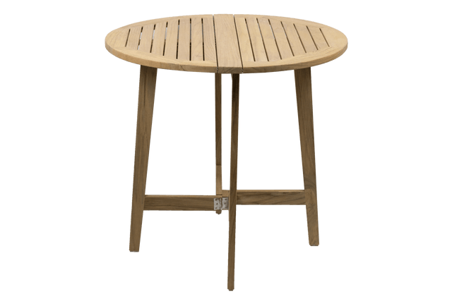 Schöner, runder Balkontisch aus Teakholz mit zwei ausklappbaren Seiten. Der Tisch lässt sich sehr einfach halbieren uns nimmt so nur wenig Platz auf Ihrem Balkon auf. Diese Multifunktion ist sehr praktisch für die kleineren Balkone wo der Tisch auch als Beistelltisch funktioniert. Der Tisch hat Beine, die wenig Platz benötigen, was unter den Tisch für mehr Beinfreiheit sorgt.