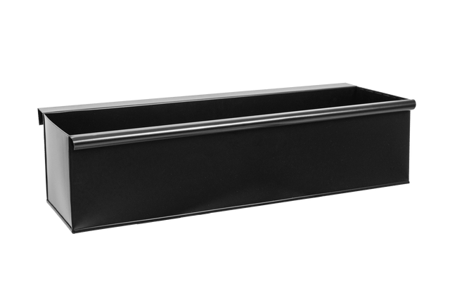 Der Balkonkasten wird aus 0,38 mm starkem, in flüssiges Zink getauchtem Eisen hergestellt. Der Balkonkasten ist schwarz lackiert.