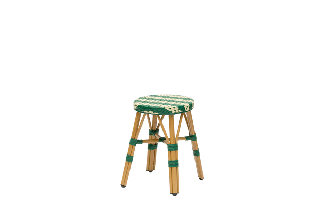 Der Gigi-Hocker kann als zusätzliche Sitzgelegenheit oder kleiner Beistelltisch neben der Claire-Bank oder dem Eloise-Stuhl verwendet werden. Dank seines leichten Designs ist er einfach zu bewegen, während das stabile Gestell für Sicherheit und Halt sorgt. Das stilvolle beige-grüne Flechtmuster sorgt für eine harmonische und elegante Optik auf Ihrem Balkon, Ihrer Terrasse oder in Ihrem Café. Entdecken Sie die gesamte Französische Kollektion hier.