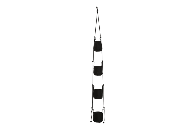 Schlicj vertikal hängende Blumentöpfe für Ihren Balkon. Mit diesem cleveren hängenden Blumentopf können Sie Ihren Platz optimal nutzen und die Höhe Ihres Balkons ausnutzen. Kann sowohl drinnen als auch draußen verwendet werden. Die Blumentöpfe sind aus beschichtetem Polyester-Canvas und haben wasserdichte Nähte. Der Hängetopf wird mit Alu-Karabinerhaken und einem dicken Seil befestigt.
